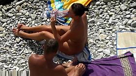 Nudist female sucking dick on beach voyeur camera