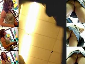 Up skirt cam follows a curly haired brunette with a juicy butt