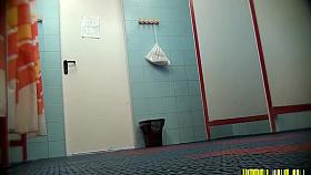 Dirty blonde scrubs and washes in a shower hidden cam porno