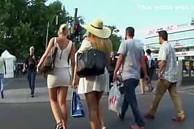 Asian in the grey coat and grey skirt got skirt sharked by some guy in public. The other one filmed her pussy on camera through panties and then they left her. These videos are really crazy.