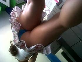 Big breasted woman with sexy legs upskirt voyeur video