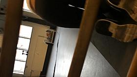 Sweetheart in high heels upskirt on stairs