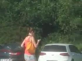 Drunk girl doing it in the parking