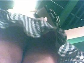 Risky Upskirt girl in white thong with Boyfriend