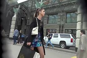 Slender sexy legs in hot stockings in the upskirt voyeur video