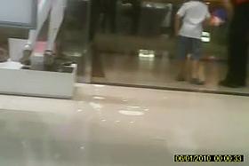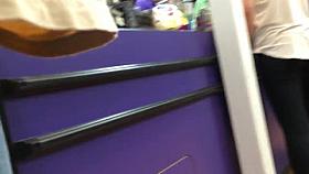 Granny wearing no panties at all caught by upskirt voyeur while shopping some groceries at the local supermarket. She has a nice ass and bush.