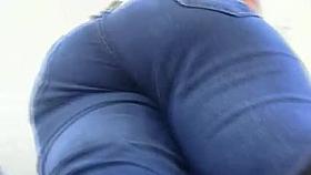 Plump bottomed lady in tight jeans chased by a street voyeur