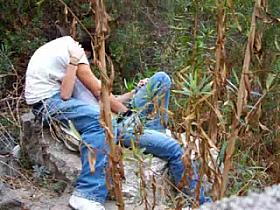 Mature fingering her fat pussy at the beach