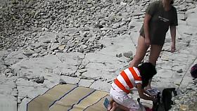 I caught a nudist girl stimulating her sensitive clitoris on the beach