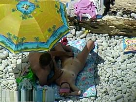 Busty topless in nudist beach