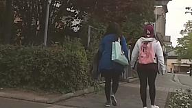 Street candid footage of chicks in a shoe store