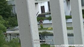 Czech babe flashes her tits and screwed for some money