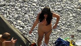 Nudist woman takes off her clothes