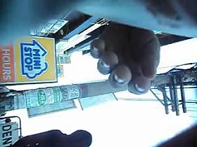 Her lack of panties is arousing as we stare up her skirt and see her pubic hair, pussy and ass. It looks like you’re just inches away from it all during the naughty video.