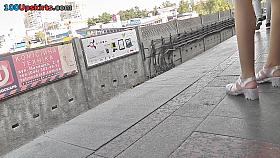 Hot whore in heels gets a sexy upskirt video shot