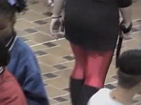 Slim candid babe in bright pantyhose and short skirt 06c