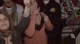 Interesting group sharking affair with two tempting babes receiving wild gift
