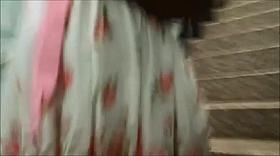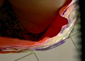 Pretty lady get cream on subway in blue silk satin skirt FNK 024