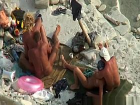 Nudists peeped on a beach
