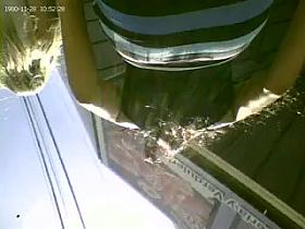 Blonde girl in colorful short dress has her nice ass secretly taped at the cafe.