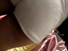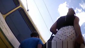 Seductive plump woman in the hot upskirt oops