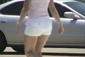 Upskirt voyeur shots of a sexy curvy teen in a striped dress