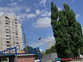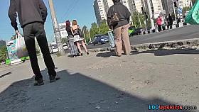 A common non-professional honey was wearing such a short checked suit that it looked like a male shirt. This Babe got into the bus and let our cameraman admire the view of that darksome panty belt up petticoat.