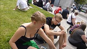 Down blouse and cleavage on teen