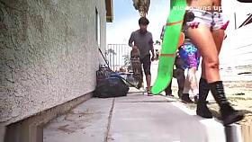Sweet Japanese girl peeing at the urinal with her boyfriend