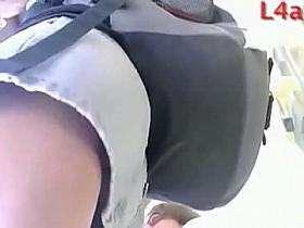Slim blonde wears mini skirt and a thong in upskirt mov