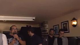 Great looking blonde woman, Caroline de Jaie is masturbating on the stage, in front of men
