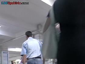 Fantastic XXX upskirt porno hot brunette mama ass under skirt