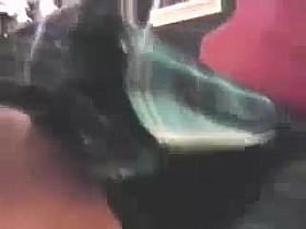 A crazy bitch in the disco showing and rubbing her pussy to a voyeur