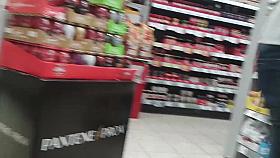 Busty Euro blonde in knickers in public