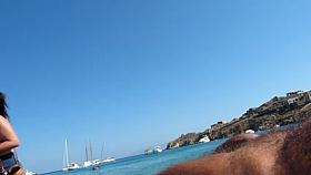 Stroking as ladies hang out on the beach