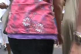 Dude touches ebony woman's ass