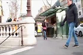 Asian woman pooping her pantyhose in public