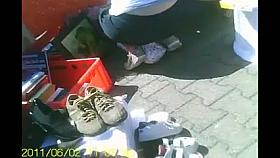 Street market seller has her big cleavage caught on the camera