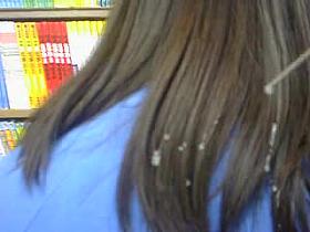 Colorful hair teen pees in bathroom