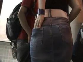 Legal Age girlr sweetheart with large butt at cashpoint