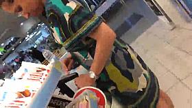 UPSKIRT--slim asian with a fat pussy peeking thru