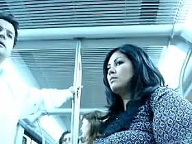 Huge tits woman cleavage in the metro