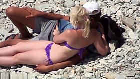 Nude spy cam on the beach with a black hair goddess in focus