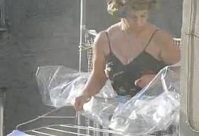 It was just too erotic to see her from way above. Sexy makeup with red lipstick, stylish clothes and most importantly, the hottest pair of big tits I saw in a while. Those two things would be great to slide a dick between for some action before cumming on her red lips.