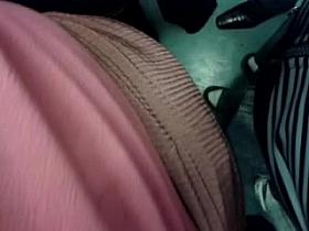 A hot up skirt view of a chick's crutch in denim mini skirt