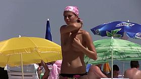 Nice boobs topless chick in the beach