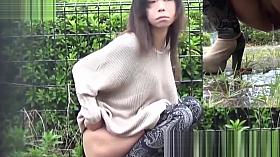Woman pissing outdoors