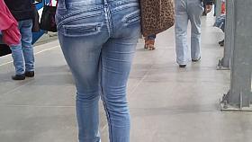 Tight pants girl in pink short gets a nice amateur voyeur cam shot