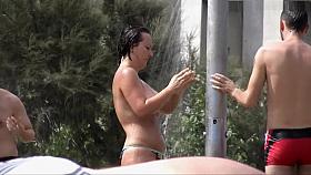 Woman with a big ass on the beach