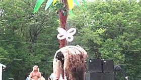 Two nude bitches converse on a nudist beach. They both have lovely large titties. One is tanned with short dark hair, the other pale with long fair hair. Their tits are large slightly saggin to the sides, but overall very nice.